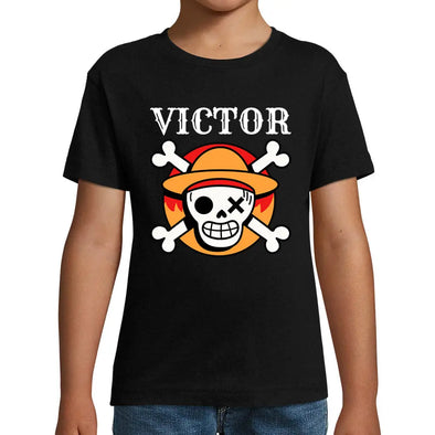 T-Shirt Enfant personnalisé avec prénom | Lufy friend One Piece style | manches courtes, 100% coton