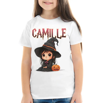 T-Shirt Blanc Halloween Enfant personnalisé avec prénom | 100% coton manches courtes