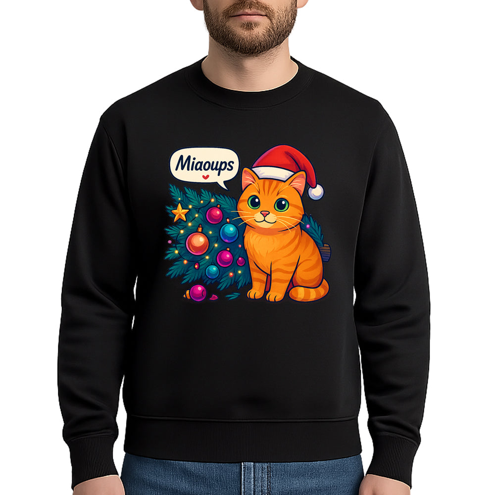 Sweat-shirt de Noël personnalisé Miaou Chat, Imprimé Chat avec Arbre de Noël – MAXI SHIRT