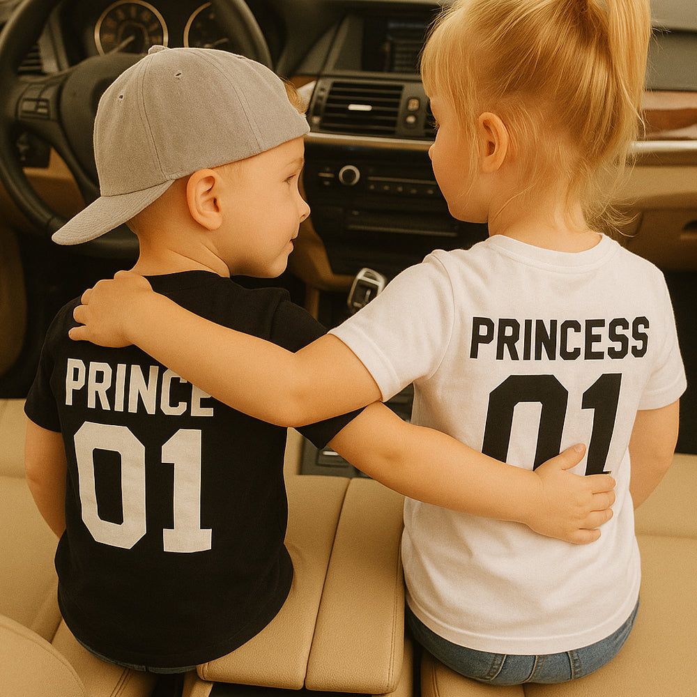 T-Shirts personnalisés Enfant Duo avec texte + numéro au DOS | 100% coton manches courtes