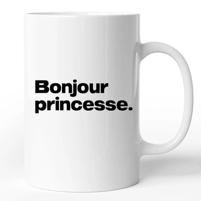 Mug drôle Bonjour princesse | idée cadeau humoristique | tasse céramique blanc brillant, marqué des 2 côtés