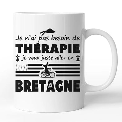 Mug Bretagne humoristique Pas besoin de Thérapie | en Céramique,Blanc Brillant | idée cadeau breton