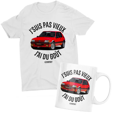 205 gti Lot t-shirt blanc 100% coton + mug céramique humoristique j'suis pas vieux j'ai du goût