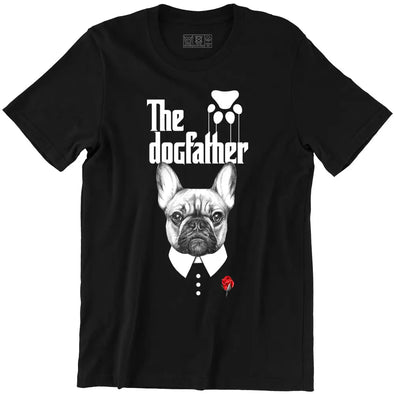 T-Shirt Noir Unisexe The Dogfather | Chien Bulldog Français | idée cadeau humour animaux | 100% coton