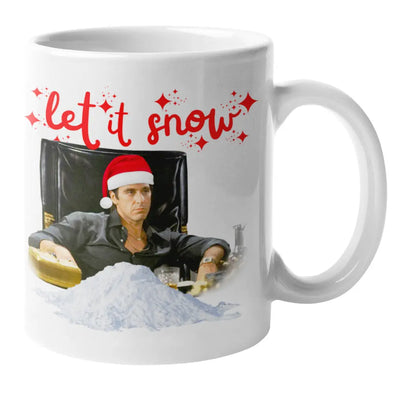 Mug Noël Let it Snow | Humour décalé | Tony Montana Scarface | en céramique | Blanc brillant
