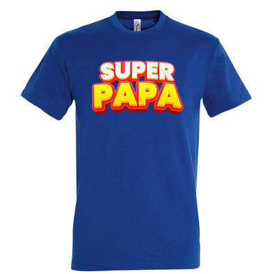 T-shirt Super Papa, 100% Coton, Bleu Royal, idée cadeau pour papa fête des pères