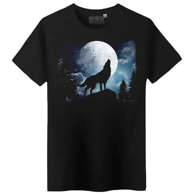 T-Shirt imprimé Loup Solitaire Clair de Lune | 100% coton Bio, épais, coupe régulière | Doux et confortable