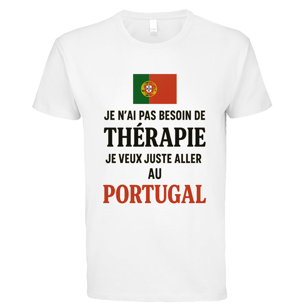 T-Shirt Portugal thérapie | idée cadeau drôle portugais | blanc 100% coton