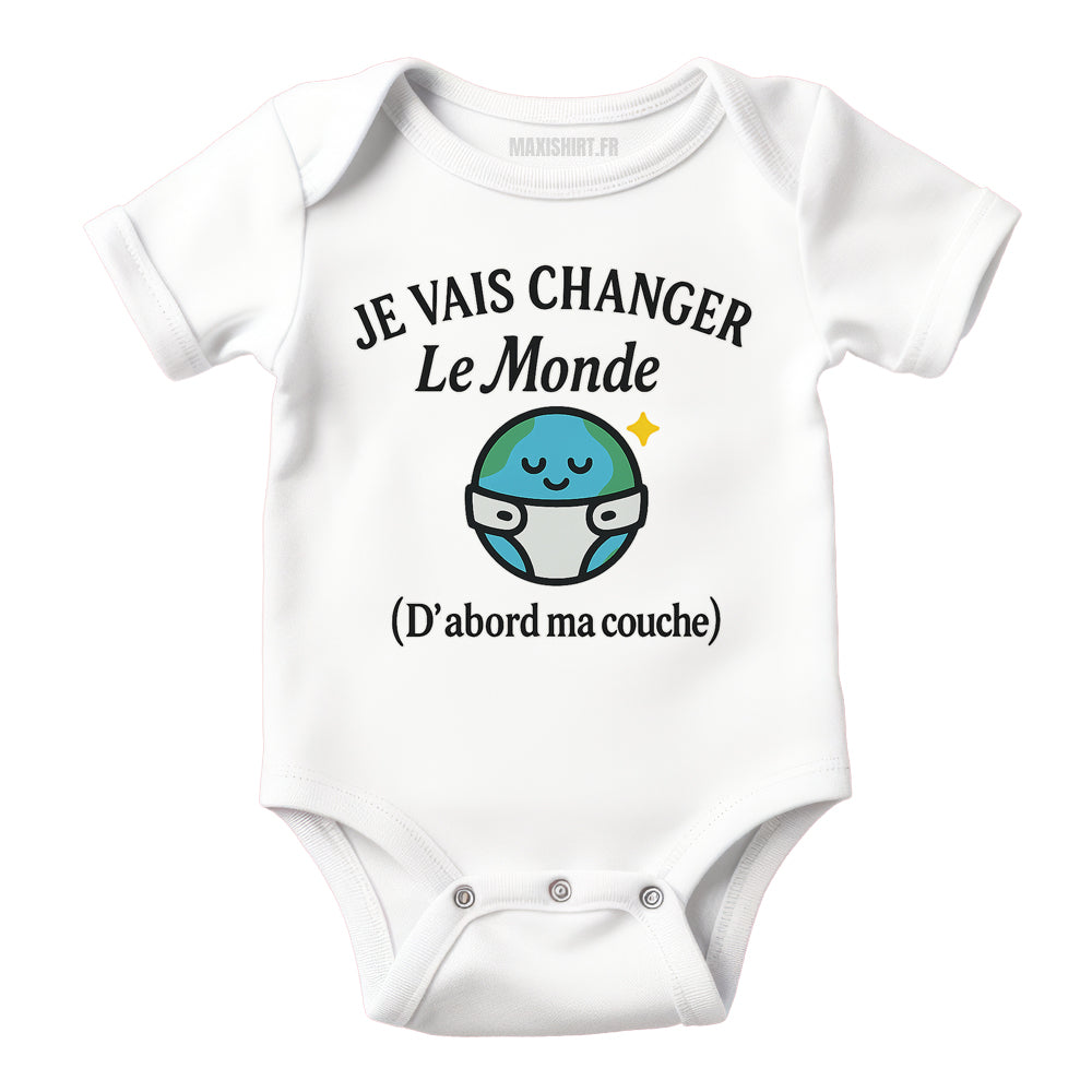Body bébé humour 'je vais changer le monde', Vêtement Blanc nouveau né – MAXI SHIRT