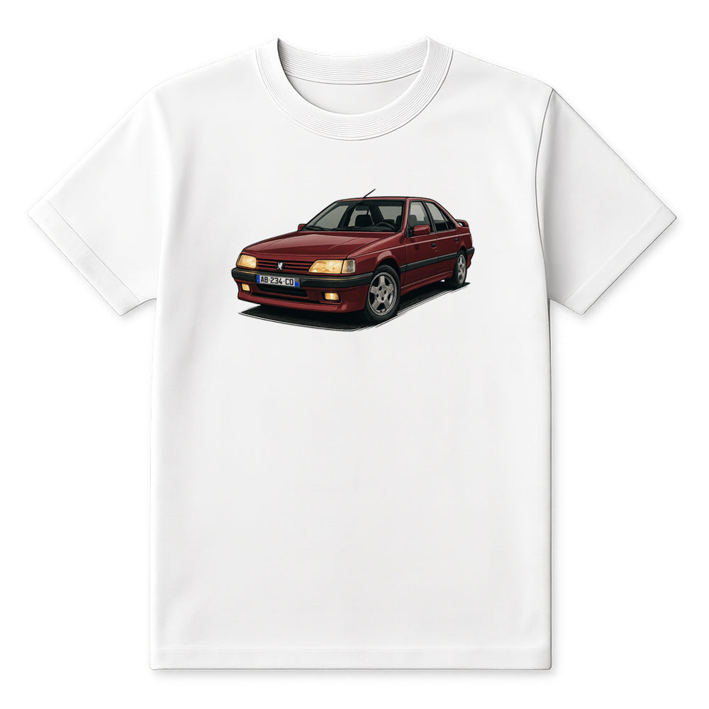 Célébrez l'icône des années 90 avec ce t-shirt dédié à la légendaire Peugeot 405 Mi 16 ! Parfait pour les passionnés de youngtimers et les nostalgiques de l'automobile française, ce basique en 100% coton affiche fièrement la silhouette mythique de cette berline culte en bordeaux. Confortable et intemporel, il transforme votre garde-robe en véritable musée roulant. À porter au quotidien pour afficher vos couleurs automobiles avec style et humour.