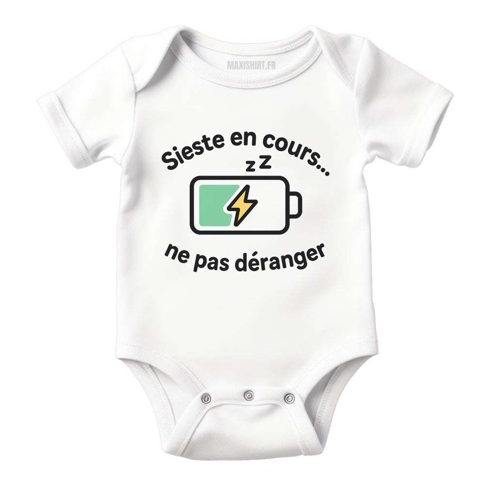 Body bébé humour Sieste en cours, Vêtement Blanc nouveau né – MAXI SHIRT