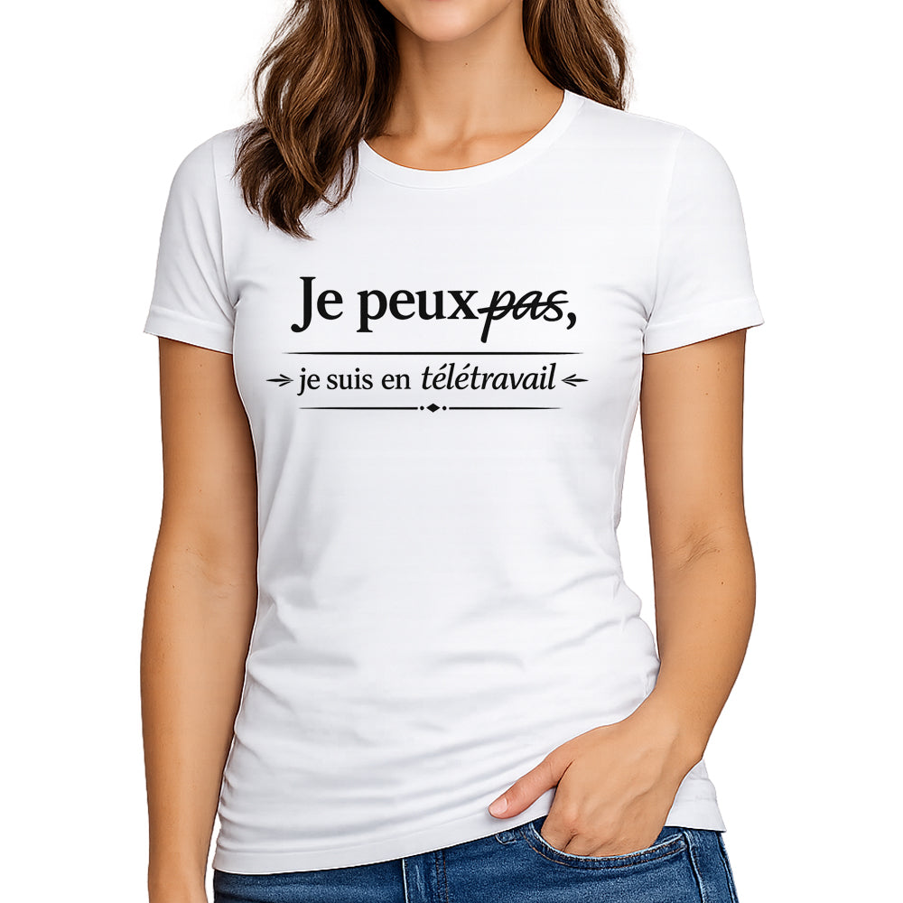 T-shirt Humour Télétravail – “Je peux pas, je suis en télétravail”