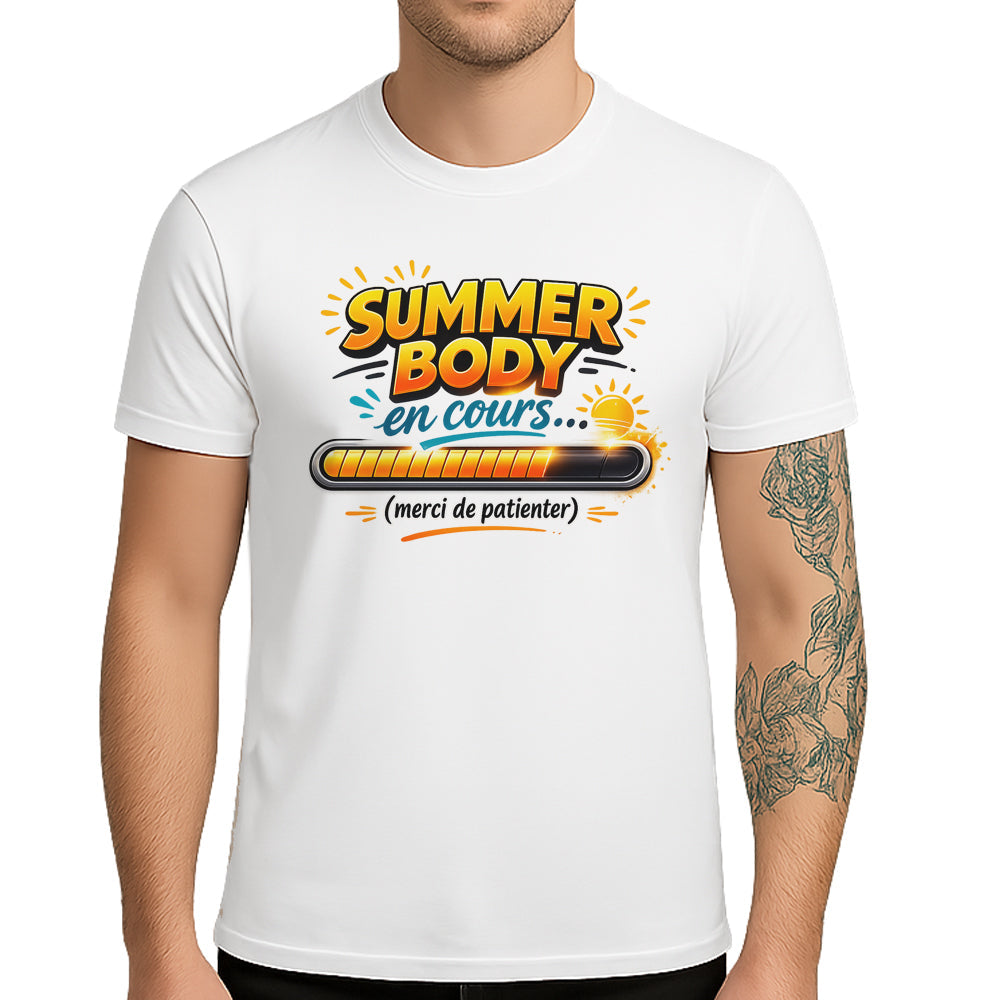 T-shirt Humoristique "Summer Body en cours…" – Idée Cadeau Sport & Motivation Été