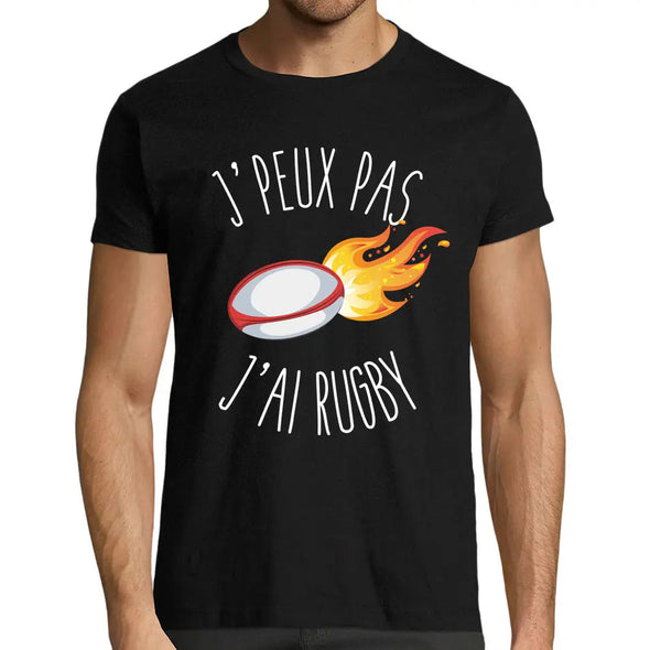 Vous avez besoin d'une excuse pour ce week-end? N'attendez plus et affichez le message avec notre "J'peux pas j'ai Rugby T-Shirt". 100% coton, impression de qualité. Pour les sportifs en herbe amateurs de Rugby et d'humour !