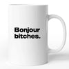 Offrez ce très joli mug drôle "bonjour bitches" à la personne qui le mérite bien. Pour faire sourir et faire plaisir, cette tasse en céramique est un cadeau parfait pour toute occasion.