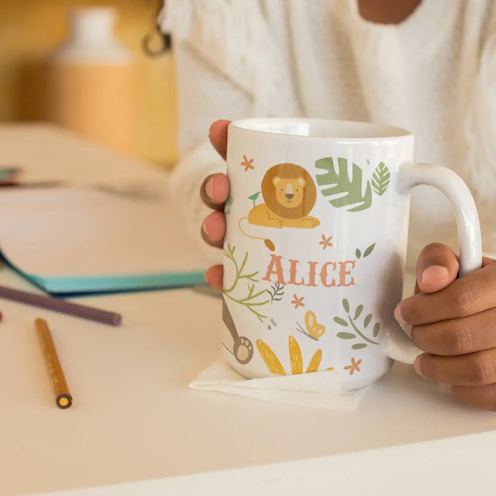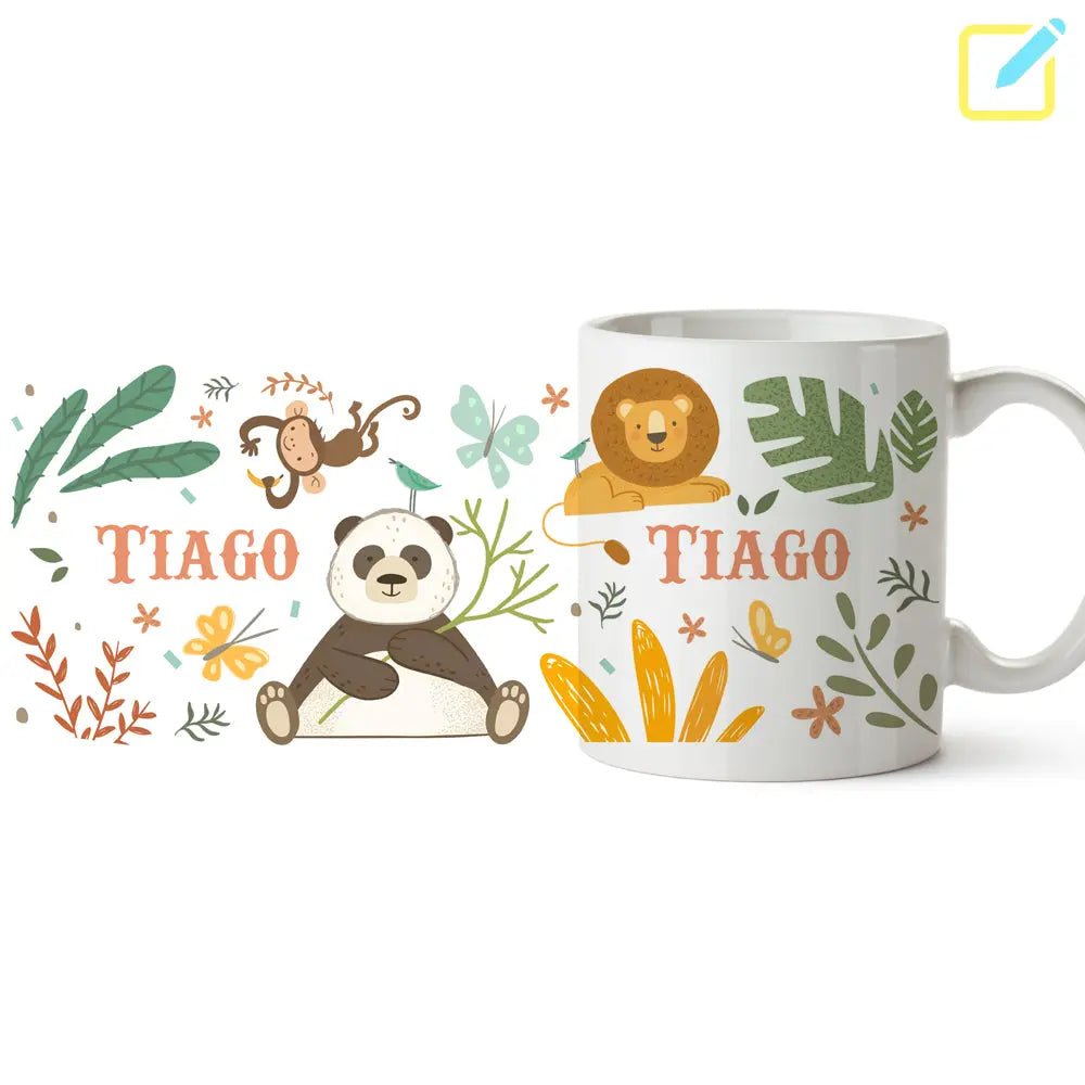 Mug enfant personnalisable avec prénom | tasse en céramique | Animaux de la jungle