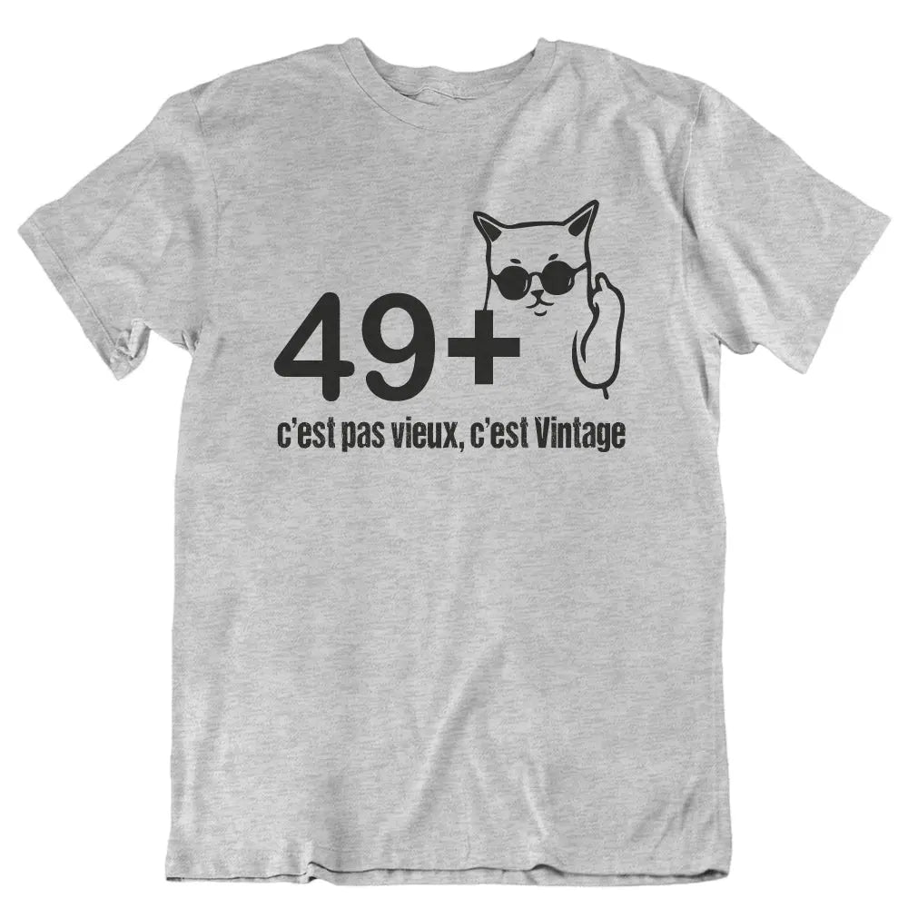 T Shirt 50 ans homme | gris chiné | idée cadeau t-shirt anniversaire | humour chat