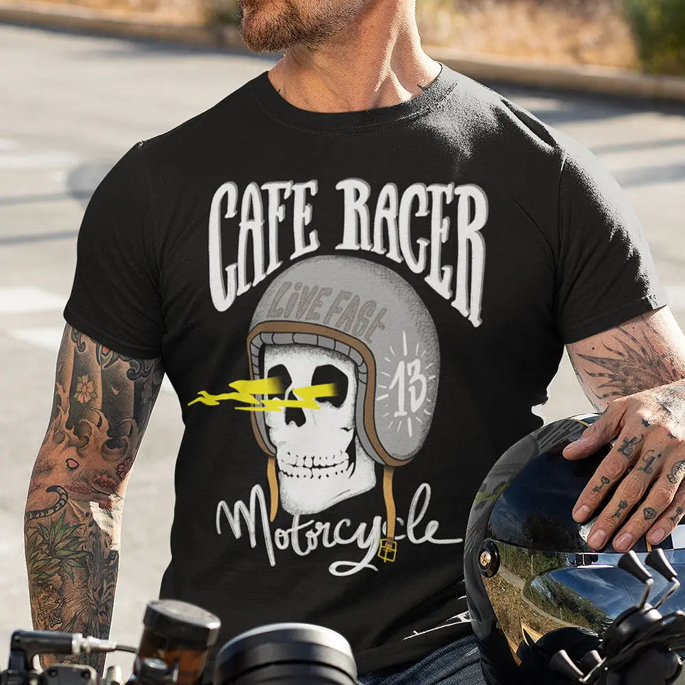 T-Shirt Noir Homme Motard | Manches courtes, 100% coton | moto Cafe – MAXI SHIRT