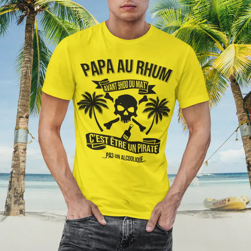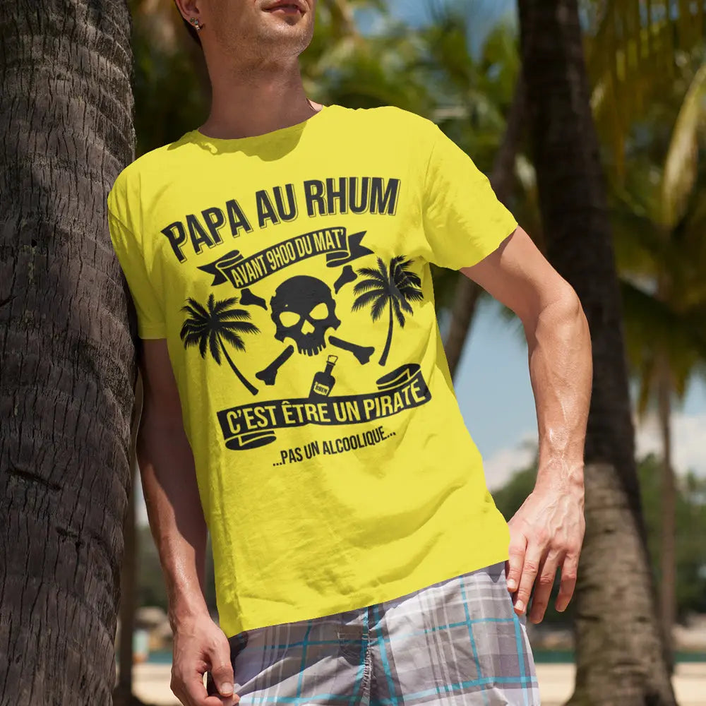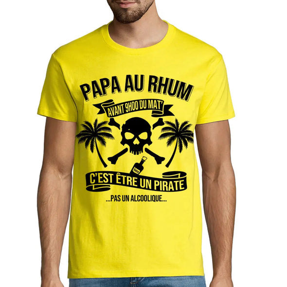 Ce très beau t-shirt homme papa au rhum 100% coton, de couleur jaune citron, est le cadeau parfait pour un été ensoleillé ! Quelques glaçons et une bonne dose d'humour.