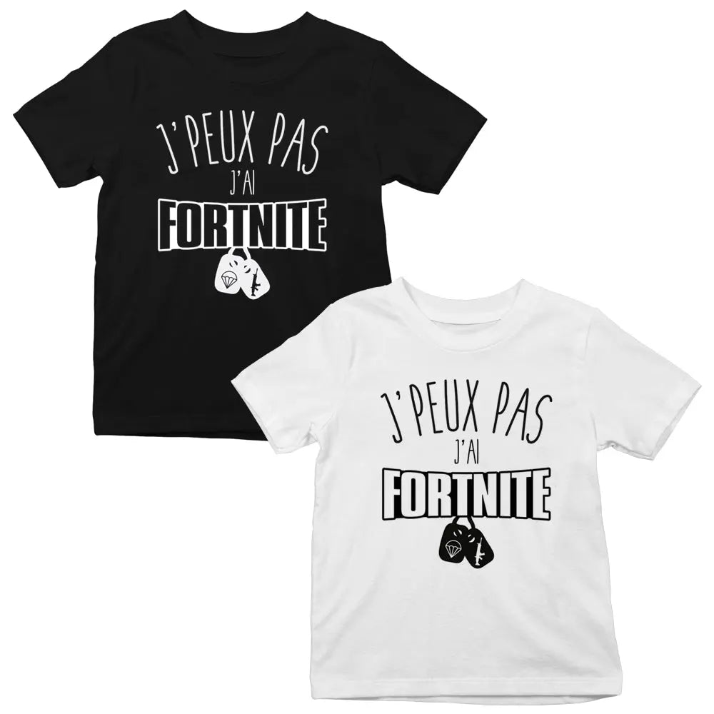 T-Shirt humour Fortnite x2 | Enfant | 100% coton, noir et blanc | idée cadeau geek jeu vidéo