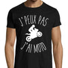 Ce t-shirt noir pour homme est l'accessoire parfait pour les amateurs de moto ! Avec son message humoristique "J'Peux Pas J'ai Moto", il saura faire sourire et attirer l'attention. Avec ses manches courtes et son design simple, il est à la fois confortable et efficace. Idéal comme idée cadeau pour les motards.