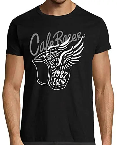 T-Shirt Noir Cafe Racer Casque ailes - MAXI SHIRT