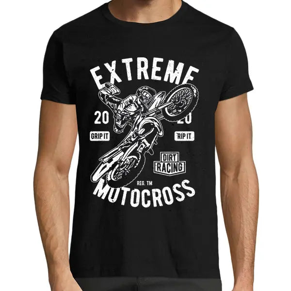Montrez votre passion pour les sports extrêmes avec ce t-shirt noir à manches courtes. Idéal pour les crosseux et les amateurs de bosses, il est parfait pour offrir en cadeau à un motard passionné. Exprimez votre style avec ce t-shirt original et unique.