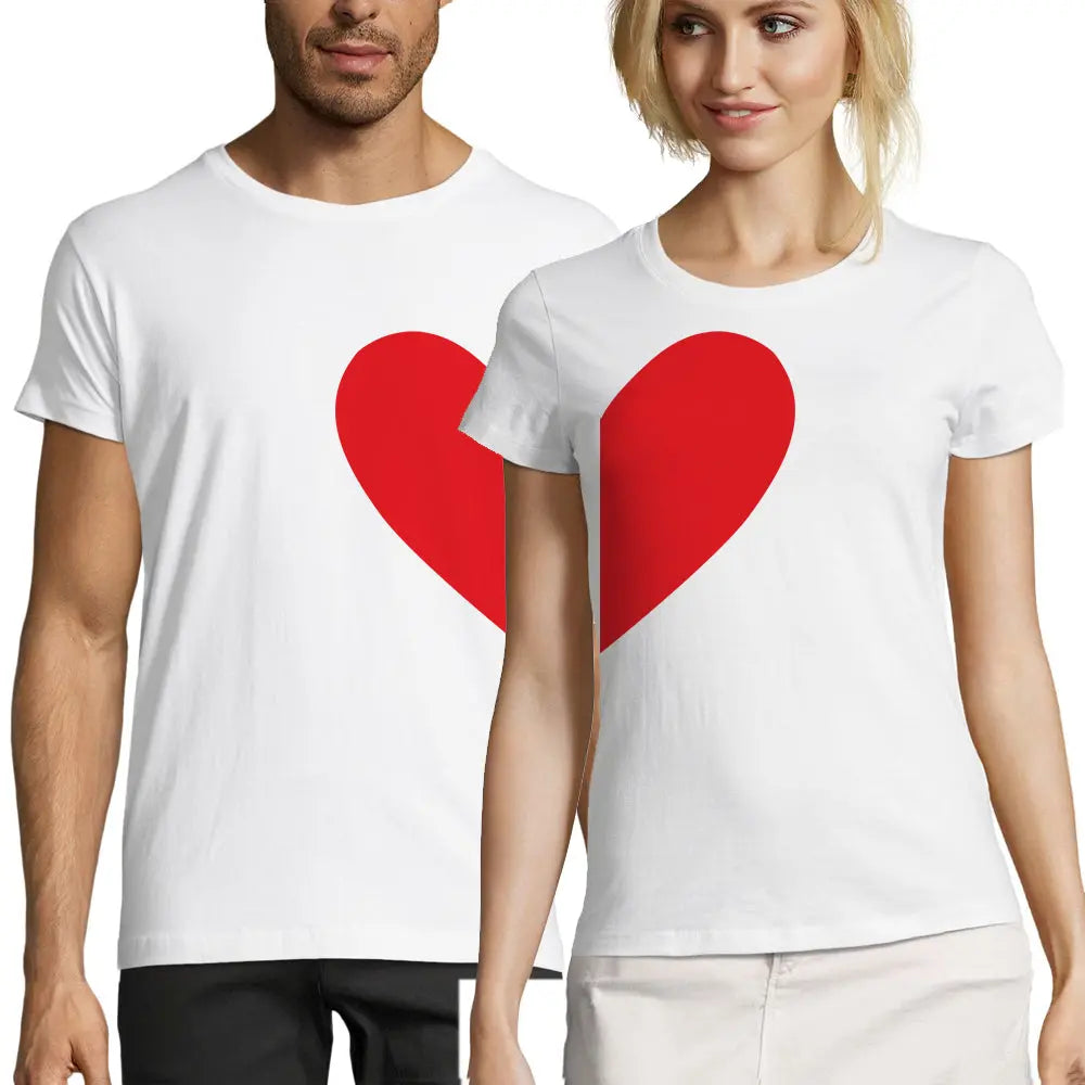 T-shirts Coeur couple - impression coeur en 2 parties - 100% coton, idée cadeau saint valentin